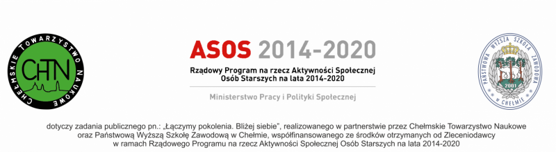 zapraszają seniorów w wieku 60+ z terenu Miasta Chełm, Gminy Dorohusk, Gminy Siedliszcze, Gminy Wojsławice do udziału w zadaniu publicznym pn.: